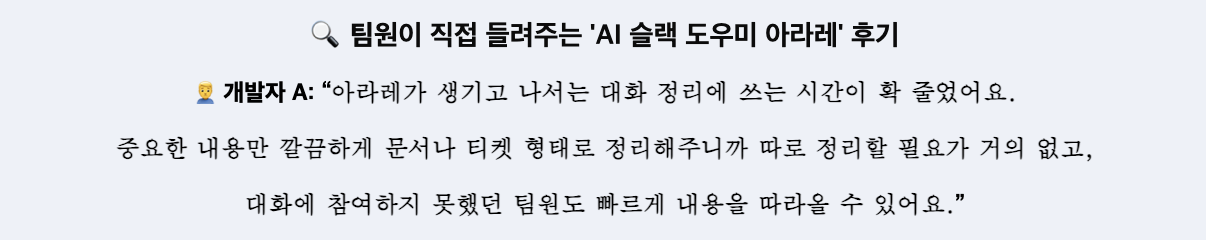 사내 대화 대부분이 슬랙에서 이루어지다 보니, 예전 대화 내용을 다시 찾아보거나 필요한 정보를 일일이 정리하는 데 꽤 많은 시간이 들곤 합니다.