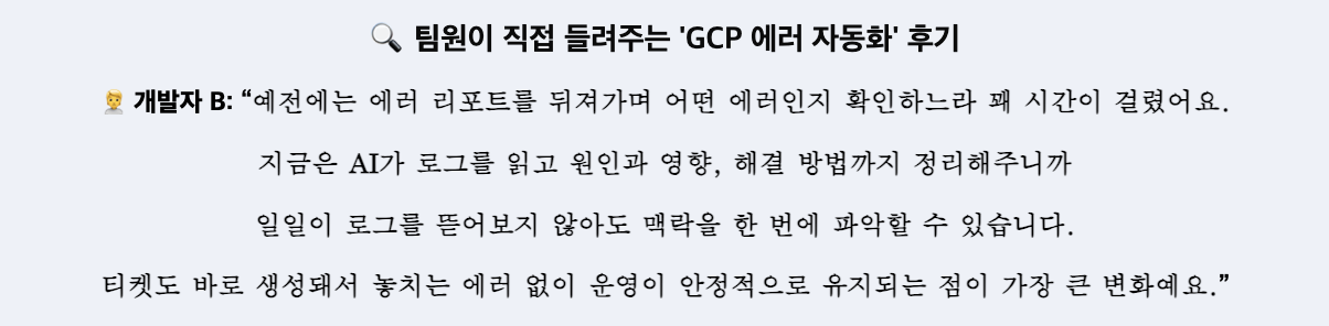 두 번째로 소개할 AI 자동화 흐름은, GCP 에러 분석부터 Jira 티켓 생성까지 이어지는 자동 대응 시스템입니다.